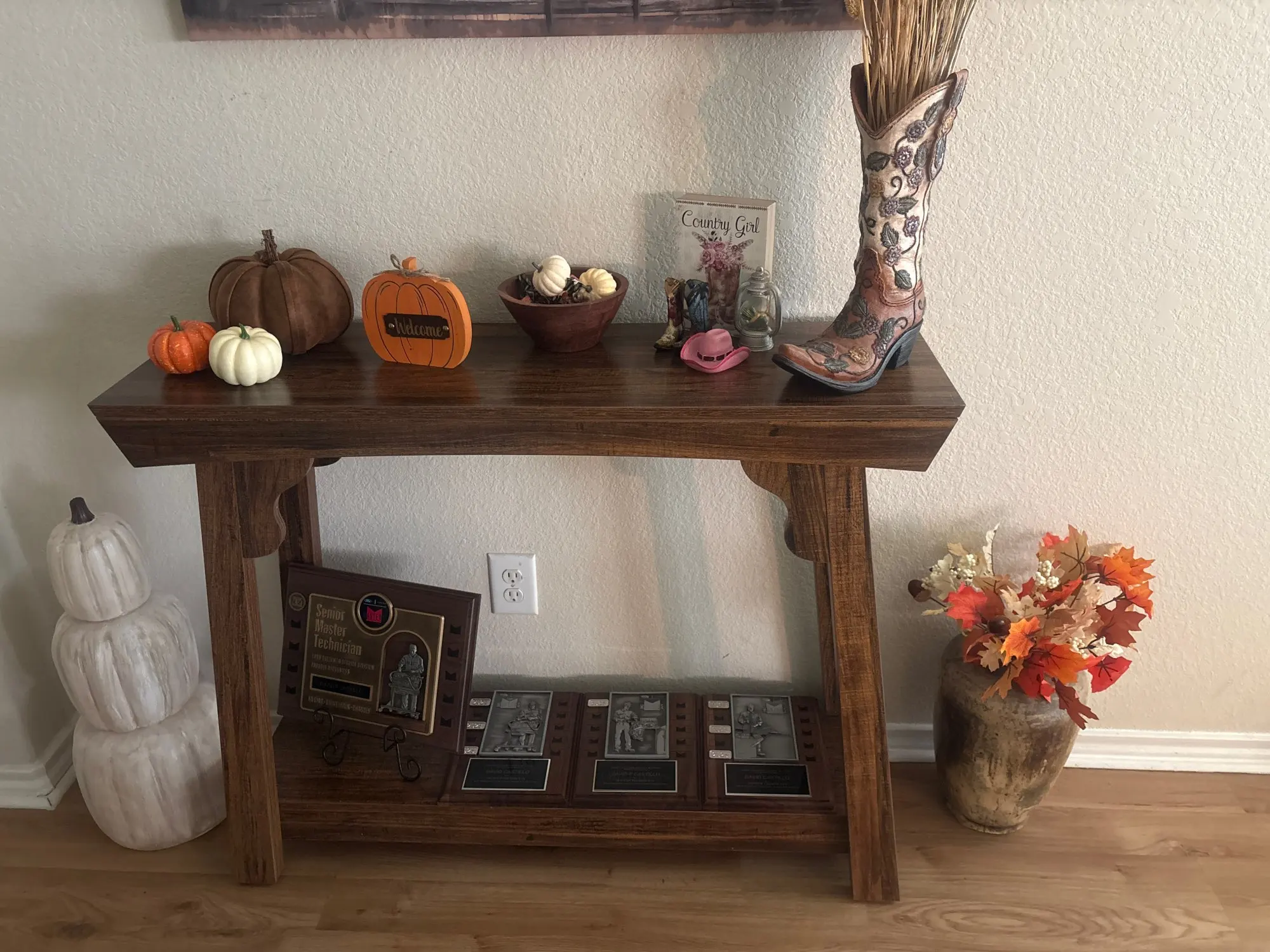Charming Rustic Style: Boasting a rustic brown finish and a sleek, minimalist silhouette, this farmhouse console table exudes a cozy farmhouse charm. It can add character and warmth to your entryway, making a great first impression on guests