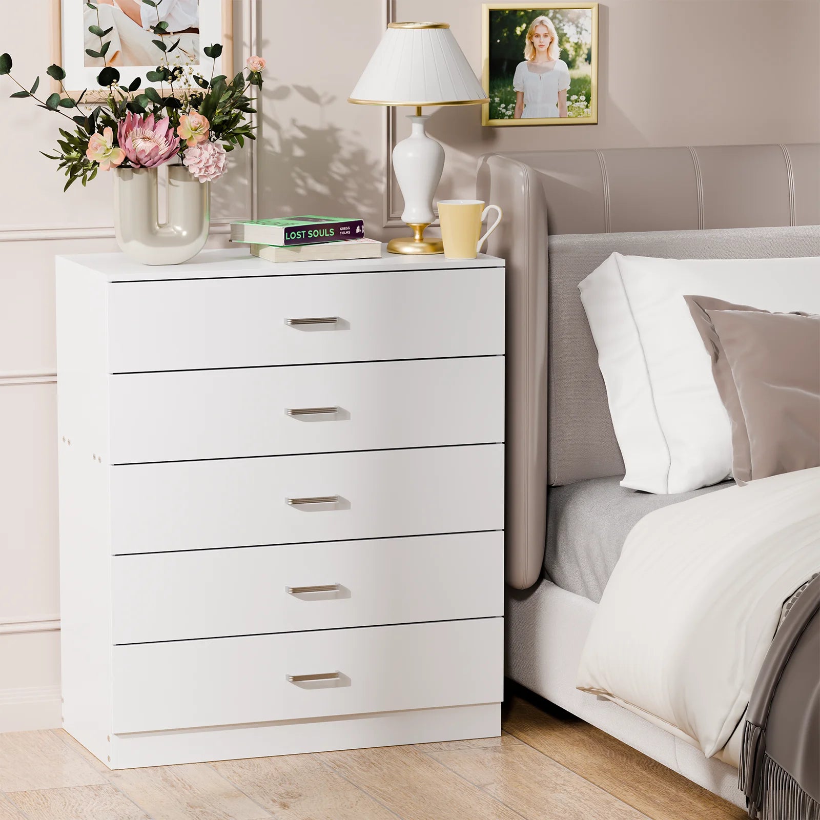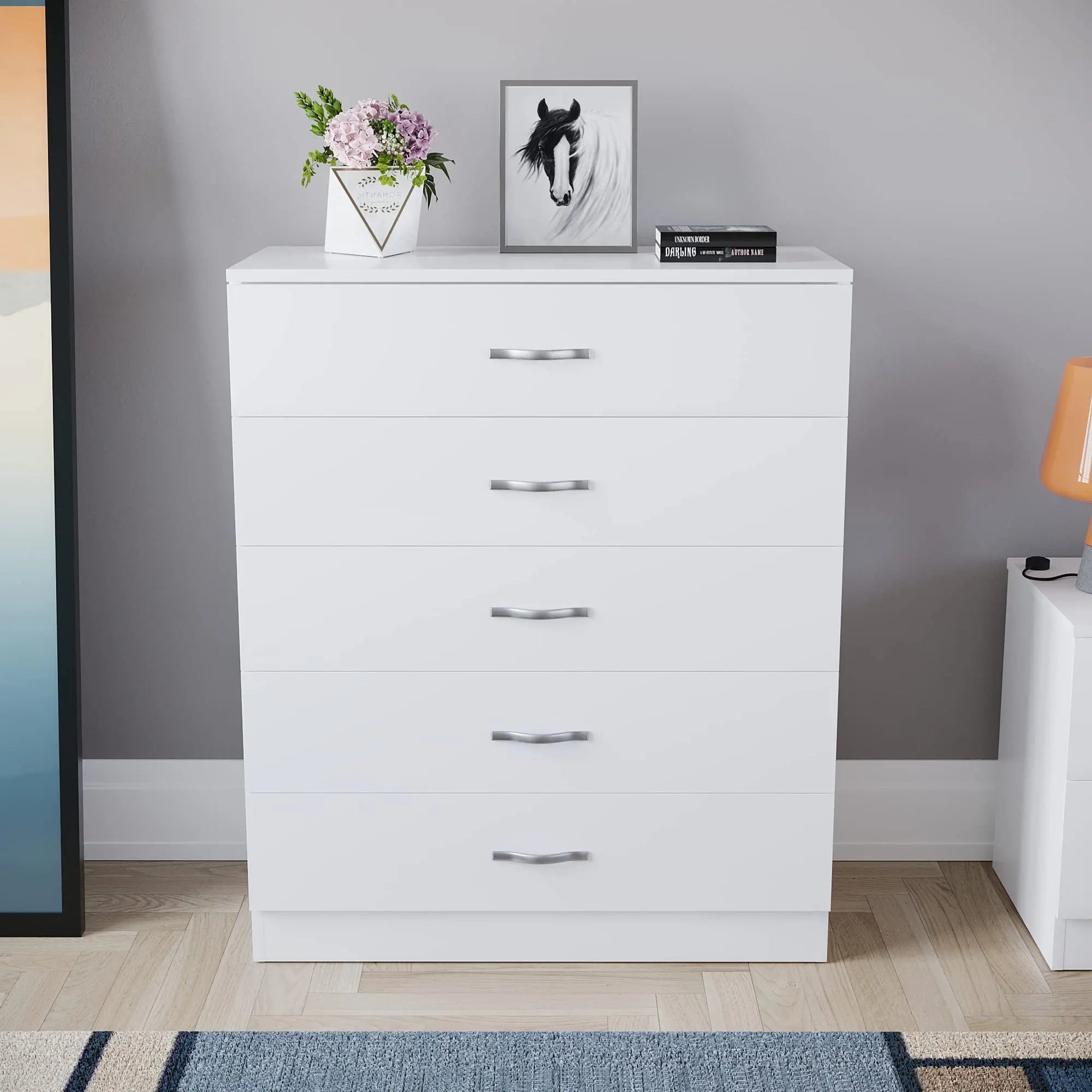 This minimalist modern wood cabinet brings sophisticated storage to your living room with five generously proportioned drawers designed for organized living.