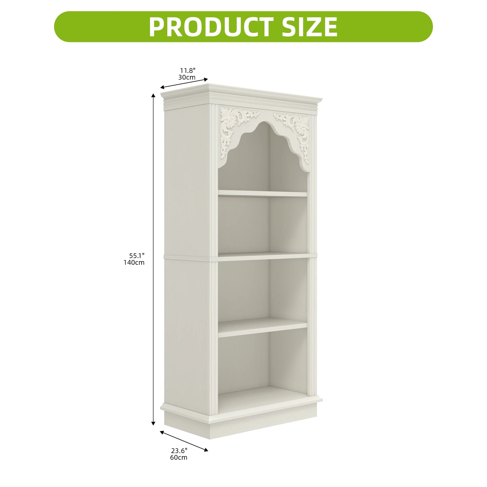 This Balconera upright bookcase merges functional storage with decorative charm, boasting a 4-tier structure and intricate carved designs—all finished in a crisp white shade. Standing at 140cm tall, it balances height and compactness perfectly, making it a stylish addition to living rooms, bedrooms, studies, or offices where both organization and visual appeal are priorities.