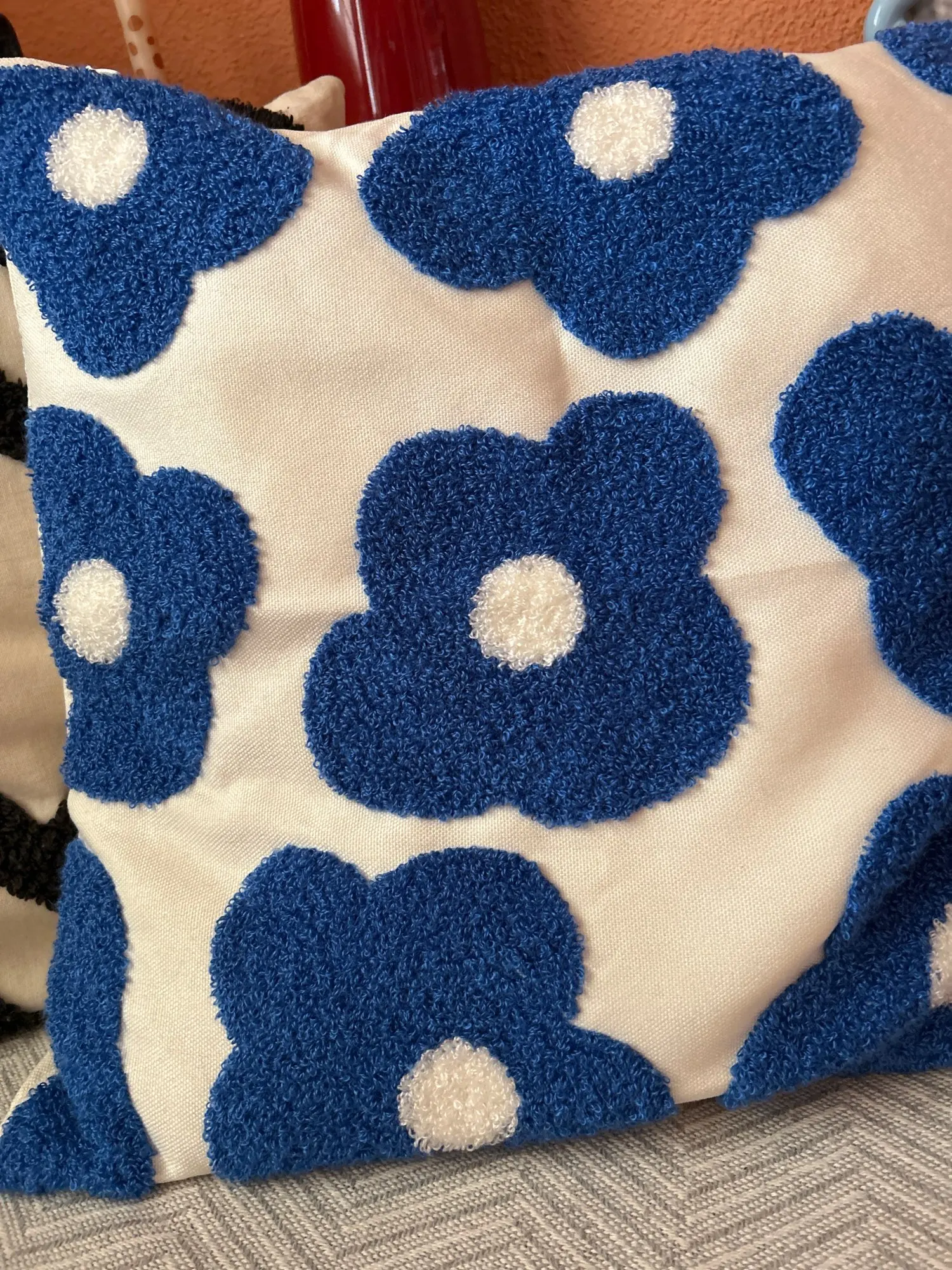 This Blue Cute & Floral Throw Pillow Cover is expertly woven with a non-toxic and eco-friendly blend of polyester and cotton.