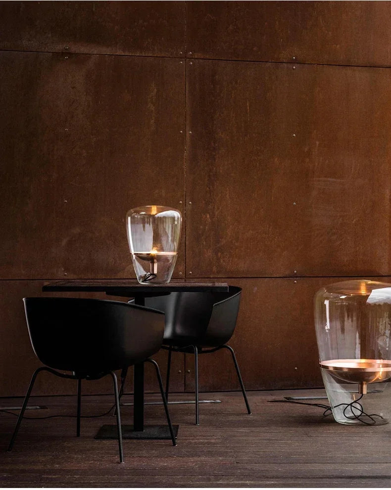 Designed for modern bedrooms, the Czech Designer Desk Light by YANKE combines an elegant iron base with clear glass stone shade for refined ambient lighting.