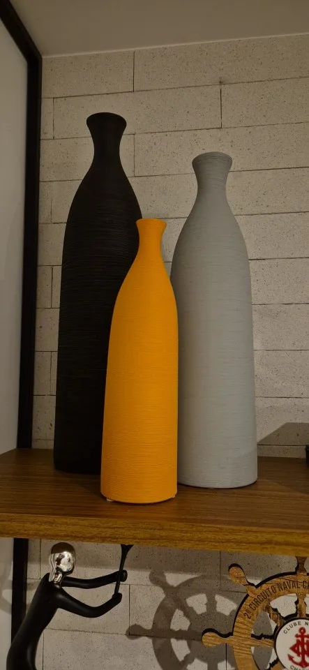 Perfect! Very well packaged, arrived intact. I ordered each vase separately as per the seller's guidance; the black and gray ones arrived quickly, but the yellow one stayed in customs for a few days and arrived a bit late. I loved the composition. The sizes and colors are exactly as described in the product listings.