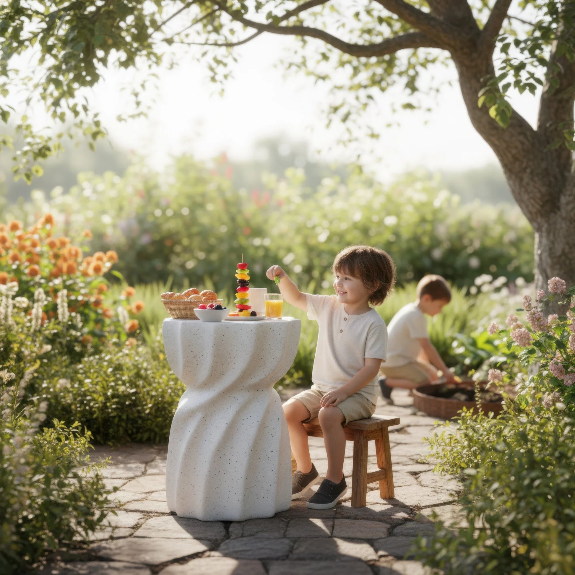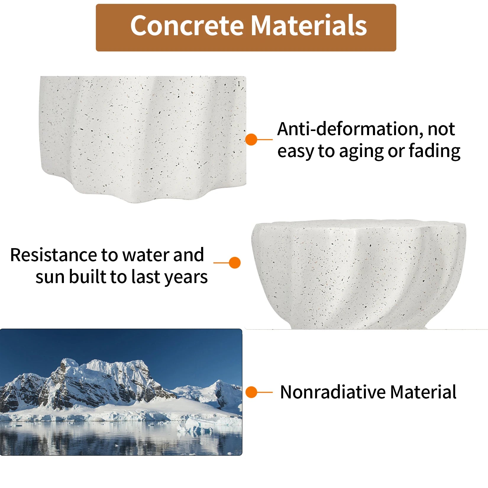The sturdy concrete construction ensures its durability, double as a temporary rest chair for guests when extra seating is needed