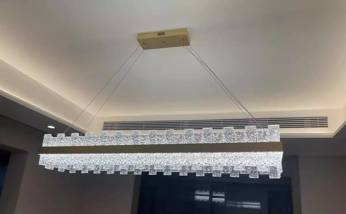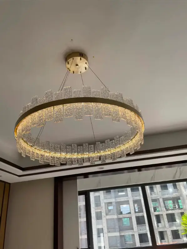 Illuminate your space with the Luxury Crystal Pendant Light by LNLZ, featuring a sleek iron finish and a radiant gold lampshade.