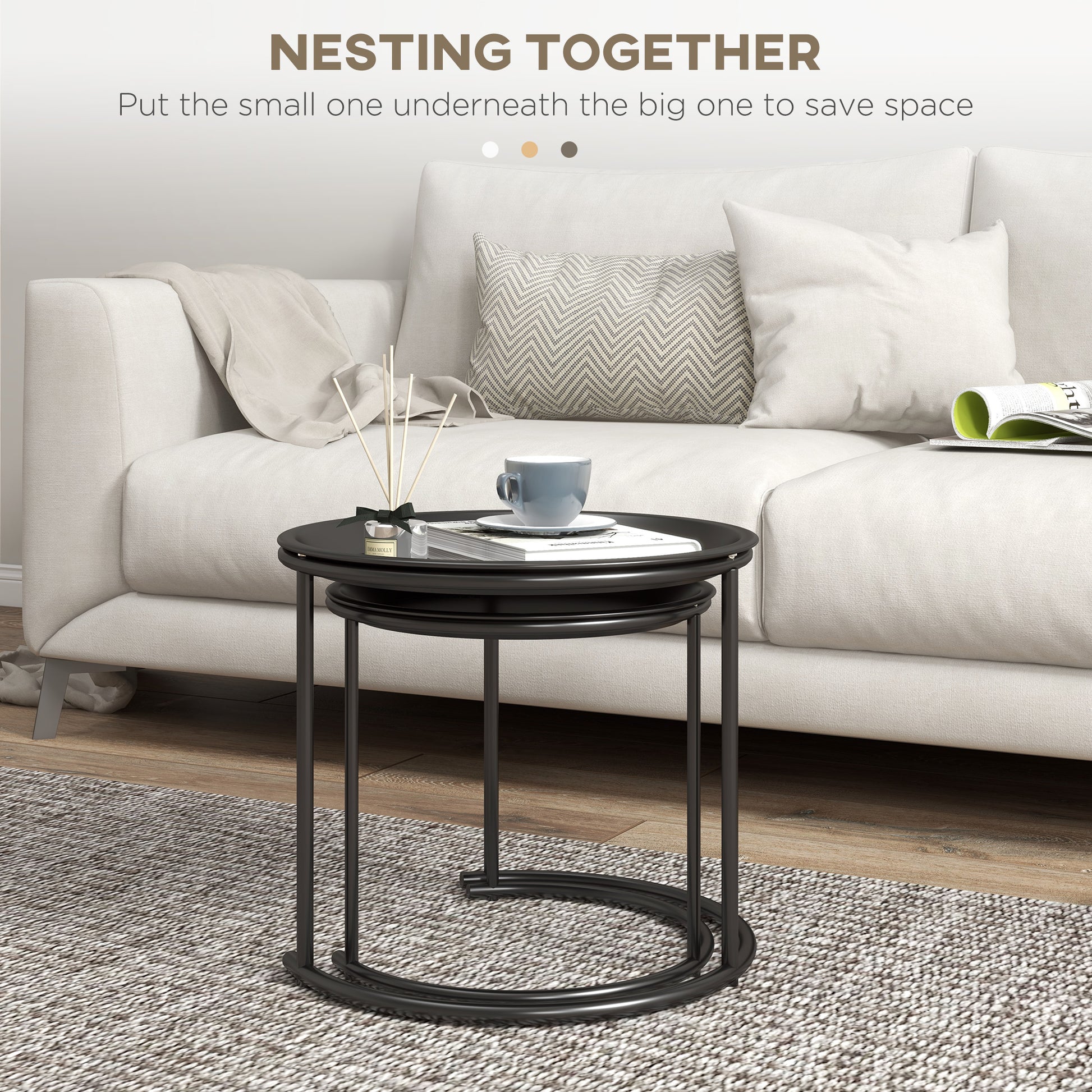 Discover refined functionality with this HOMCOM nesting table set, a thoughtfully engineered solution for contemporary living spaces.