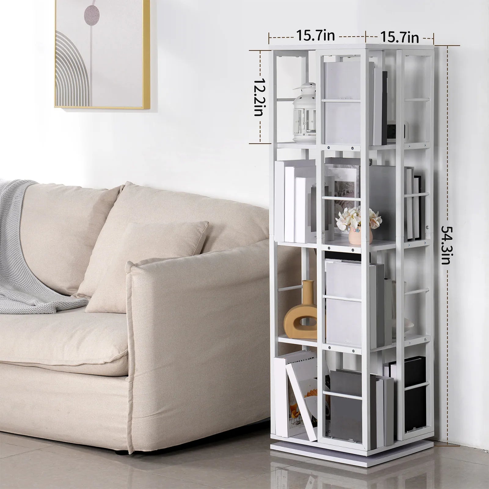 This rotating 4-tier bookshelf combines functionality with contemporary design, perfect for maximising storage in compact spaces.