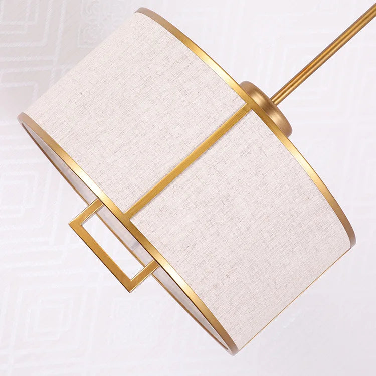 This Round Cloth Shade Pendant Light features a sleek iron finish and a white fabric lampshade, designed to complement modern interiors.