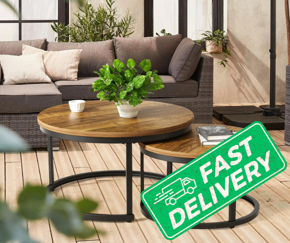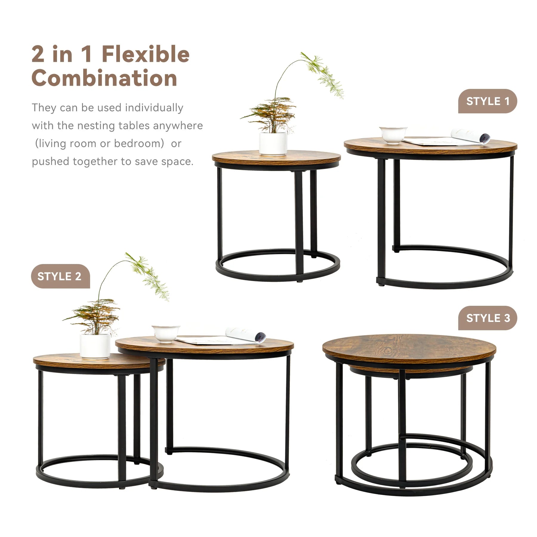 Doubled surface area: Compared with other coffee tables, this nesting table set is designed with two spacious round tabletops, which maximizes the storage space for you. The wood-like grain on the top adds a natural accent and shows your unique taste