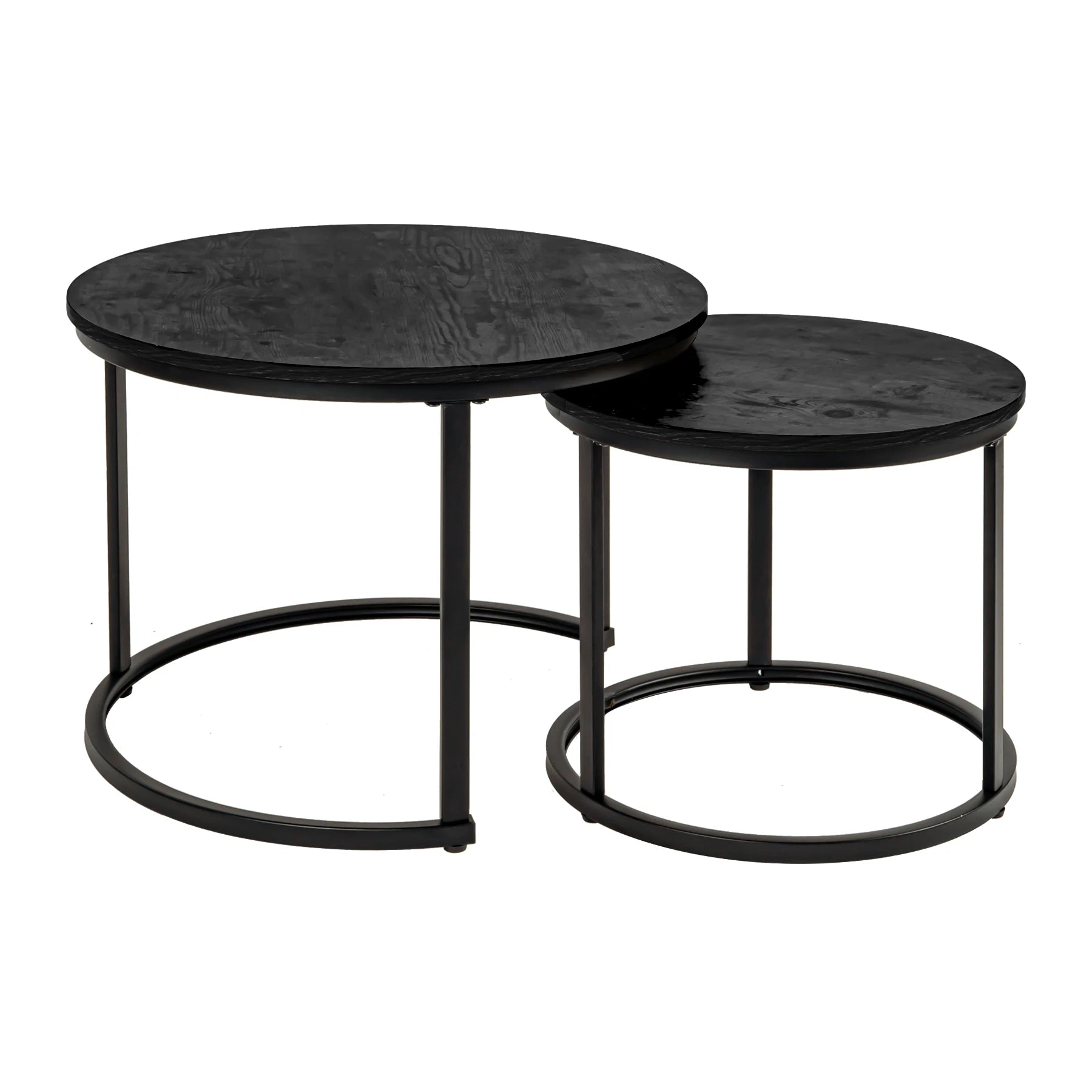 Modern industrial style: This set of 2 round coffee tables is perfect for adding a touch of modern elegance and simplicity to your living room. The black metal frame and black table top add to the beauty of the 2-in-1 coffee table, ideal for a modern loft, apartment or living room.