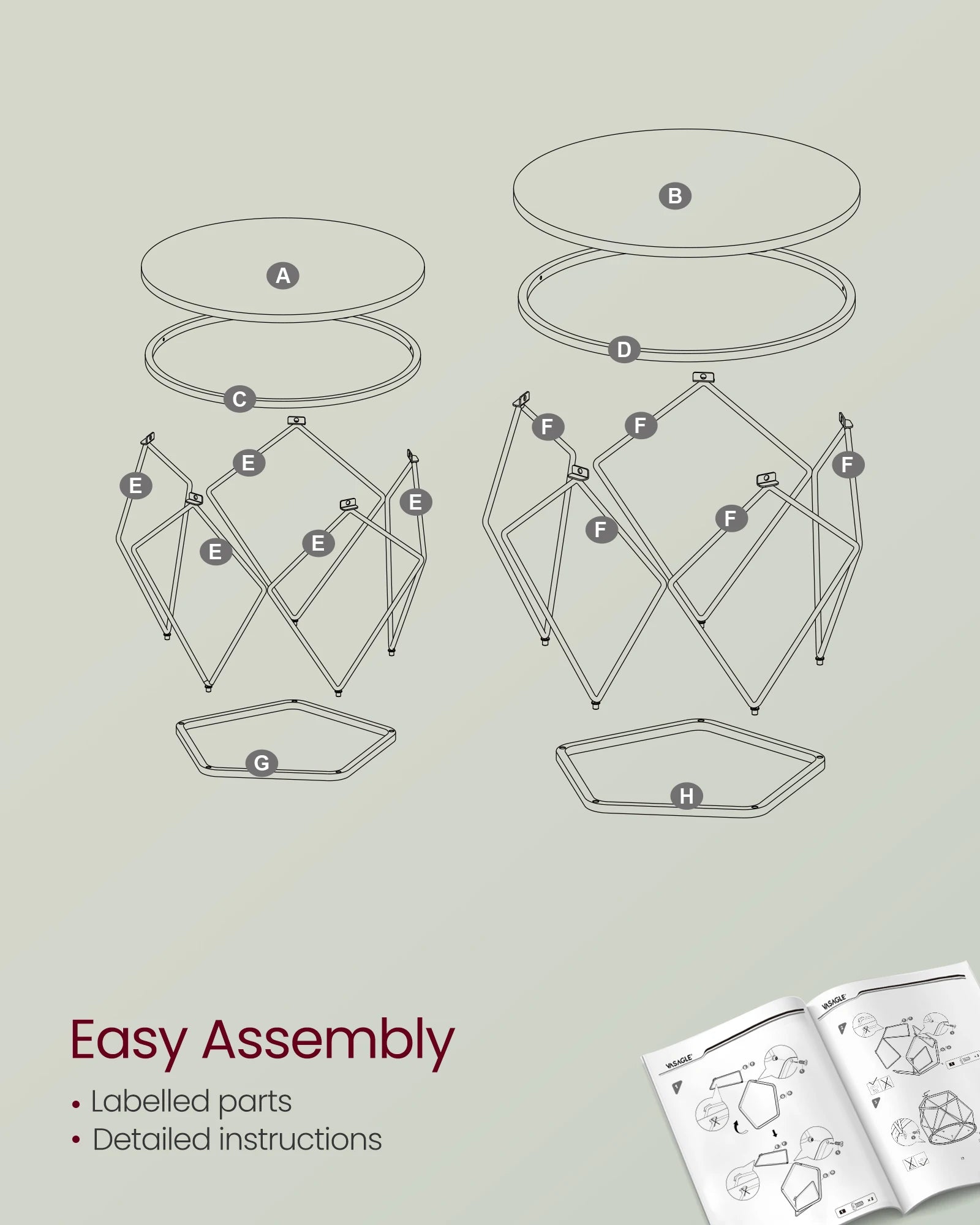 Assembly is straightforward with clearly numbered components and spare parts included. A practical solution that doesn't compromise on style.