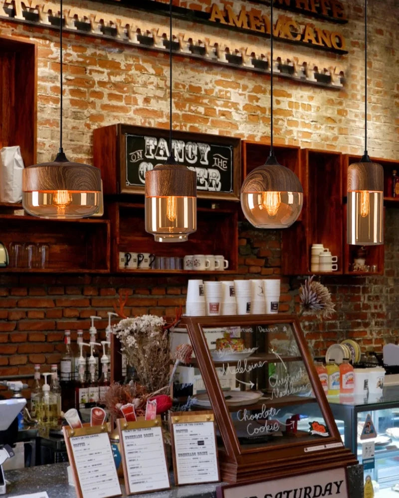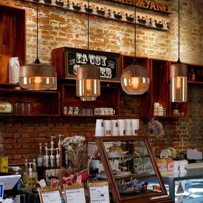 The Vintage Wood Pendant Light by IWHD combines classic design with durable materials, featuring a glass stone shade and iron finish for a timeless vintage appeal.
