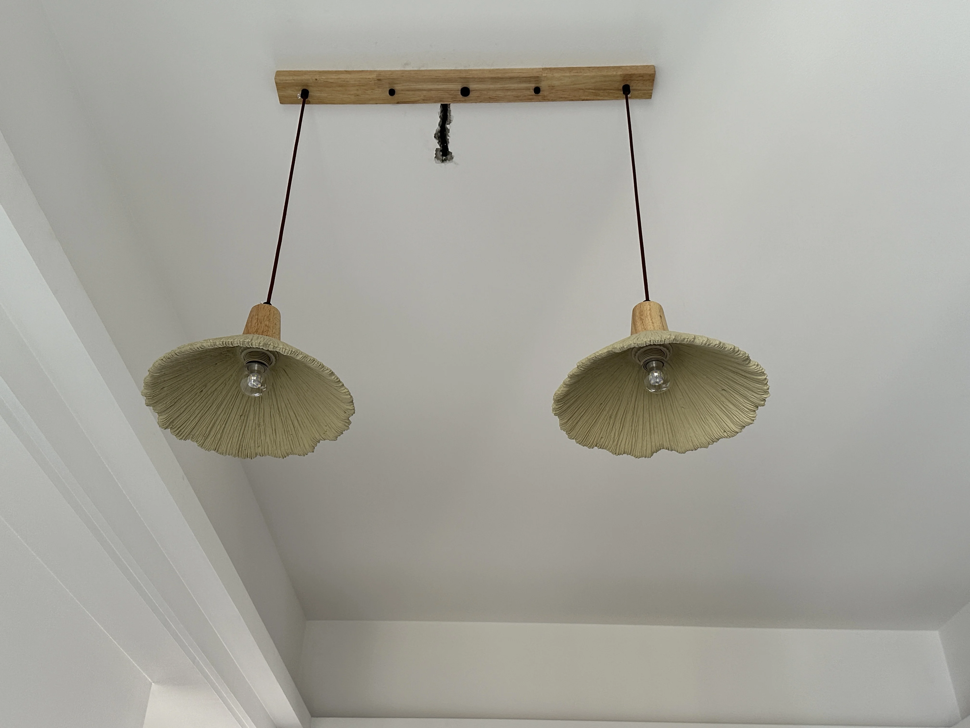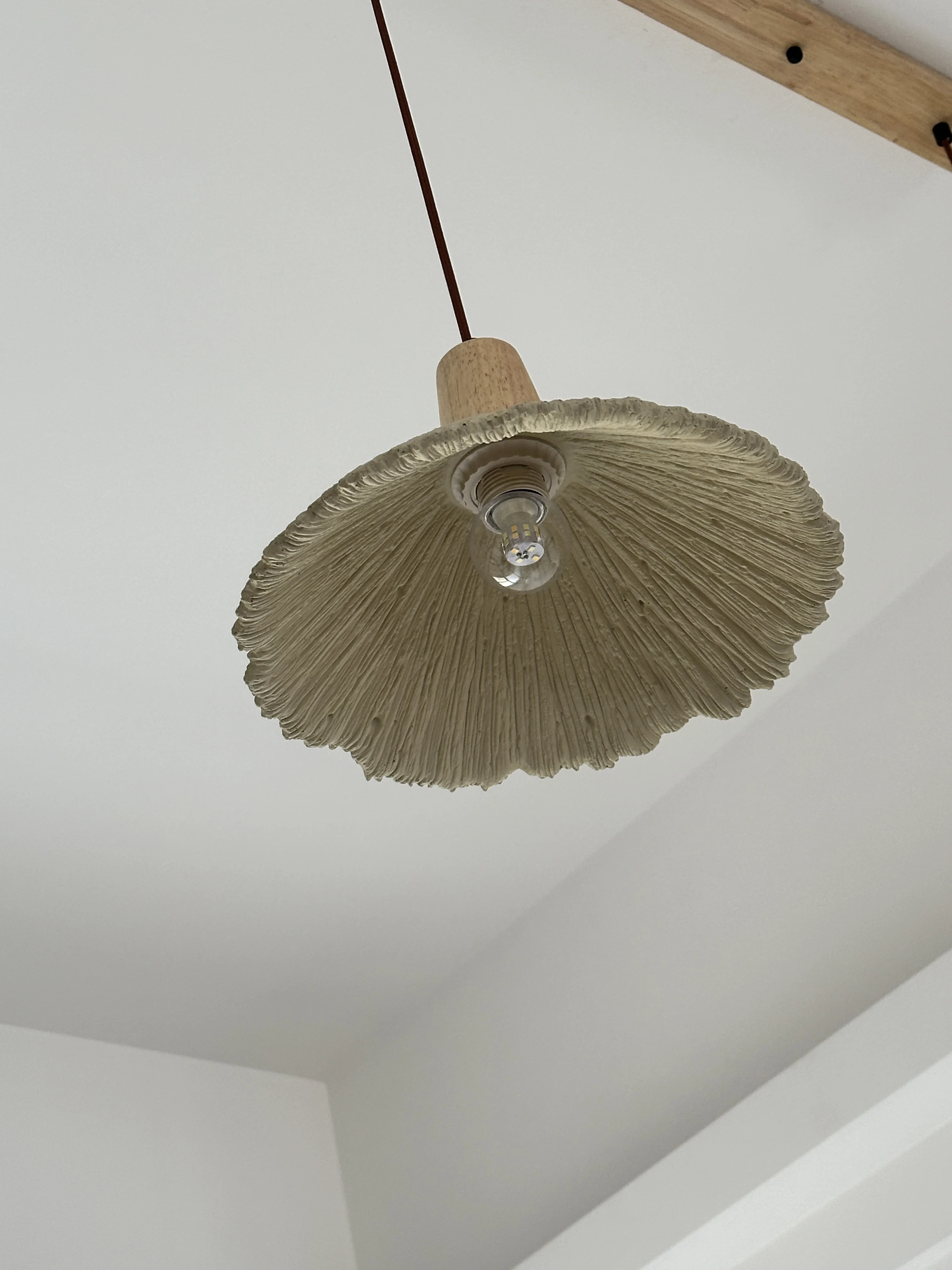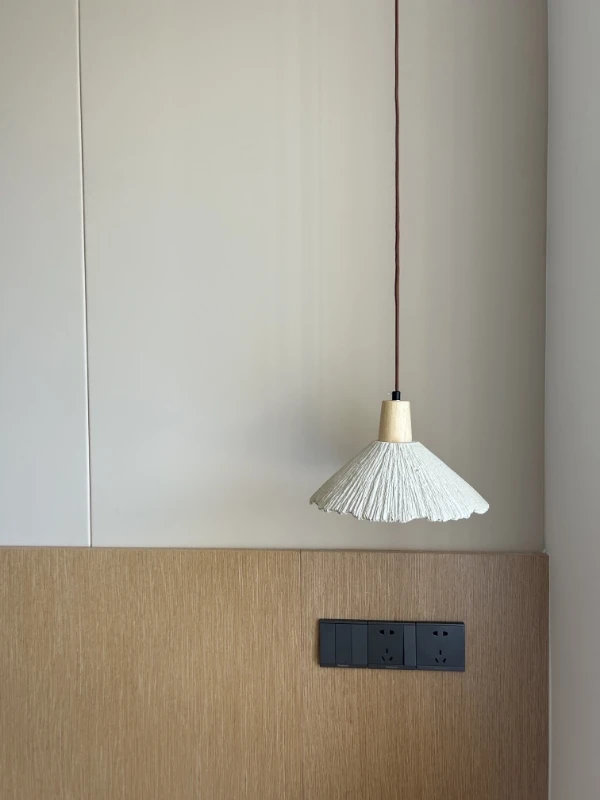 This is a super beautiful chandelier. It looks great whether the light is on or off. The height can be adjusted and it can be customized according to our requirements. The texture is good and the workmanship is fine. It's good value for money and very suitable for my home scene. It's a plus. The cement lampshade has a very good texture. I love it