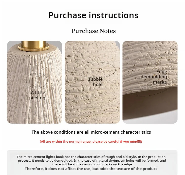 The micro cement lights book has the characteristics of rough and old style. In the production process, it needs to be demolded. In the case of natural drying, air holes will be formed, and there will be some demolding marks on the edge.